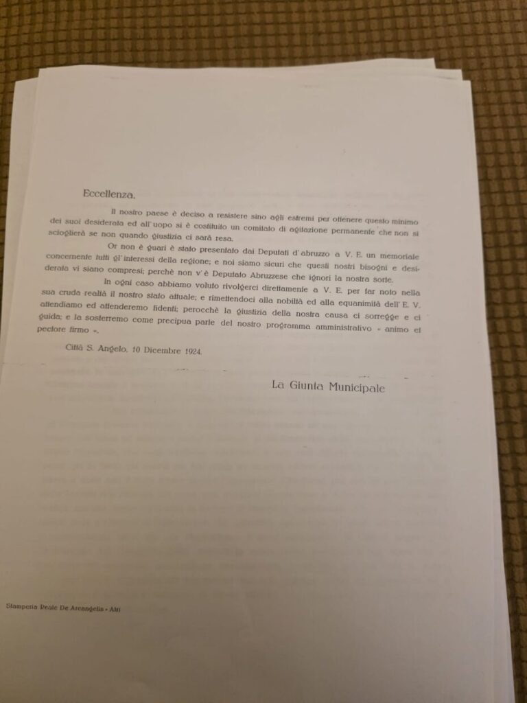 In conclusione, la lettera del 1924 non è soltanto una richiesta burocratica rivolta al governo, ma un vero manifesto identitario. In essa si intrecciano orgoglio civico, memoria storica e strategia politica, offrendo uno spaccato significativo delle tensioni e delle aspirazioni di una comunità abruzzese nell’Italia dei primi anni del regime fascista.
