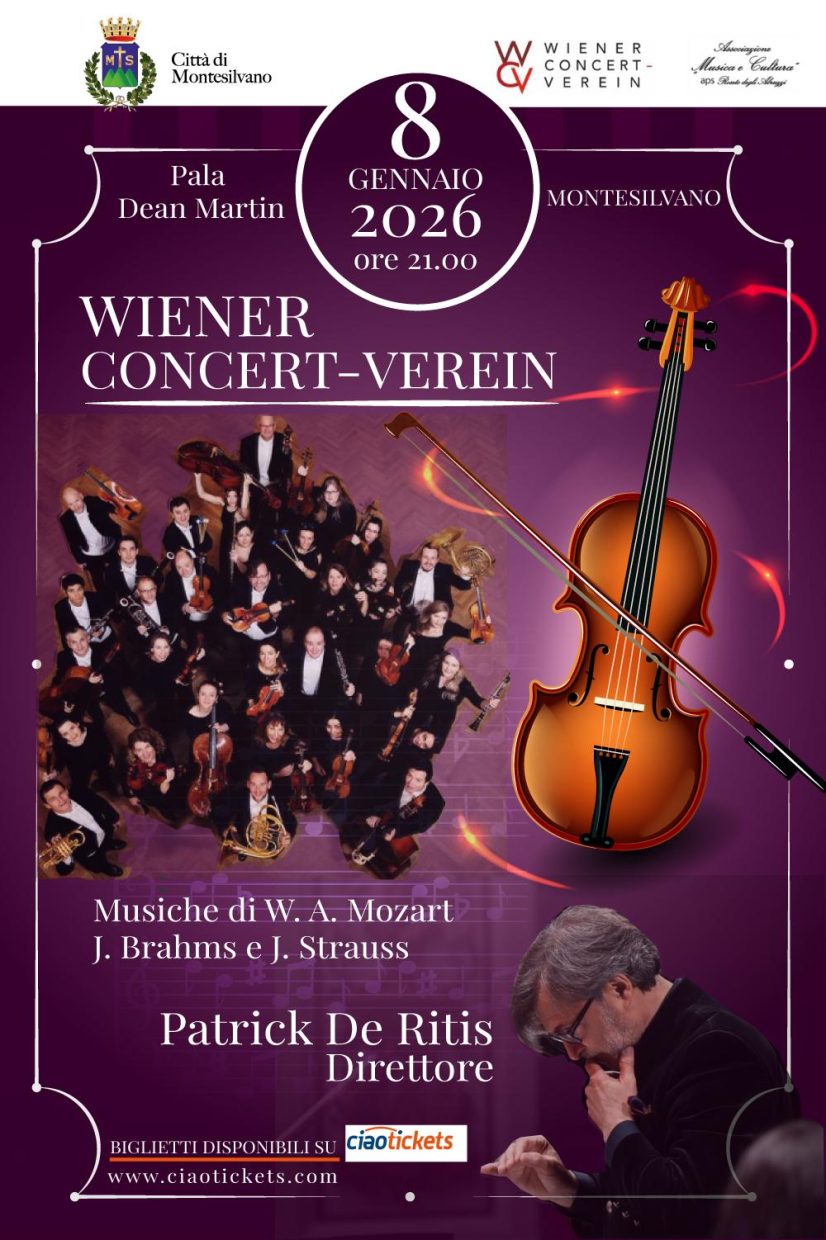 Montesilvano, 7 gennaio 2026 – Domani sera la grande musica classica sarà protagonista a Montesilvano. L’8 gennaio 2026, alle ore 21:00, il Pala Dean Martin ospiterà il debutto di un evento di altissimo livello culturale: il concerto dell’orchestra da camera di Vienna “Wiener Concert-Verein“.a L’iniziativa, fortemente voluta dall’Amministrazione comunale di Montesilvano, è realizzata in collaborazione con l’associazione Musica e Cultura, presieduta dalla dottoressa Michela De Amicis. Un ritorno atteso in Abruzzo dopo oltre venti anni: l’orchestra sarà diretta dal M° Patrick De Ritis e proporrà al pubblico un repertorio affascinante e intramontabile, con musiche dedicate a tre giganti della classica: Mozart, Brahms e Strauss.