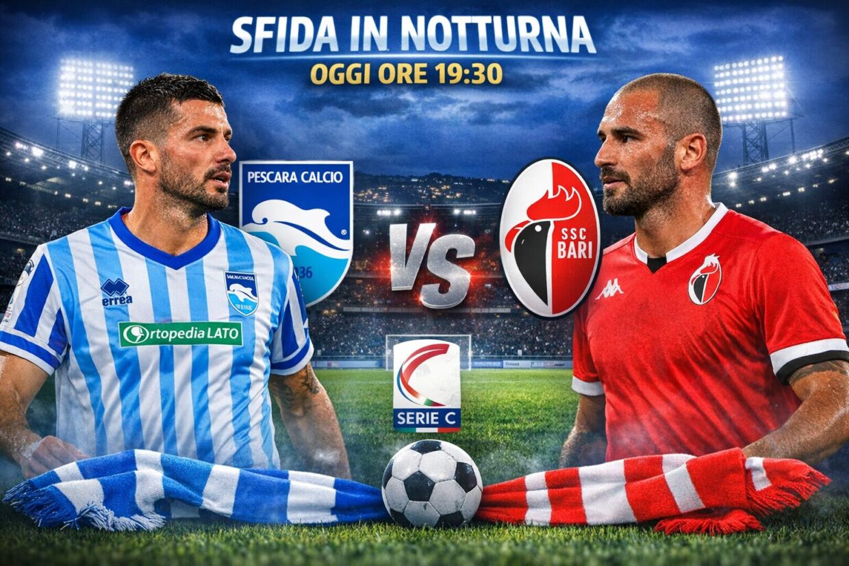 Svarione difensivo del Pescara al 23′ che perde palla con Brugman e concede un’occasione d’oro al Bari. Tiro dal limite e palla alle stelle.