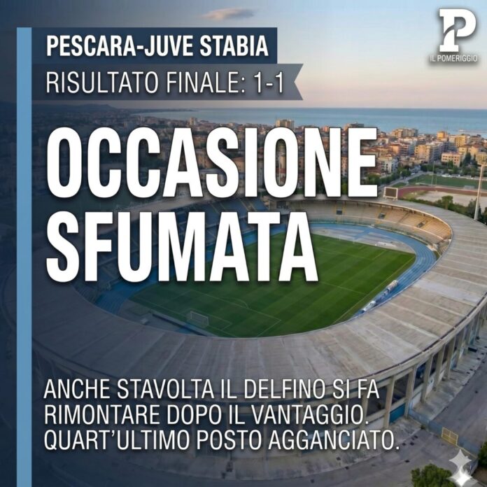 C’è qualcosa di profondamente frustrante nel guardare questo Pescara. È come assistere a un film di cui conosci già il finale, ma speri ogni volta in un colpo di scena che, puntualmente, svanisce al momento del dunque. Contro la Juve Stabia è andato in scena l’ennesimo déjà-vu: il vantaggio, l’illusione, e poi quel lento, inesorabile sgretolarsi sotto i colpi di un avversario che, a differenza nostra, sa esattamente cosa vuole dalla vita.
