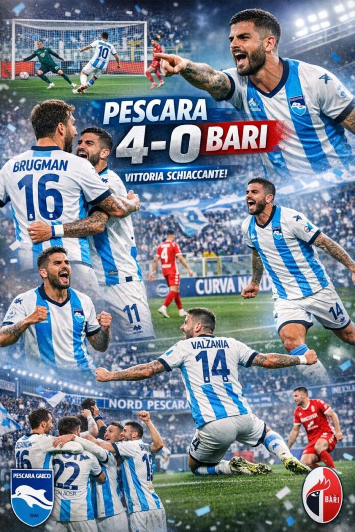 Al 42′ Di Nardo cerca la tripletta, ma Cerofolini blocca. Dopo pochi minuti arriva il triplice fischio: il Pescara vince 4-0 e firma una delle prestazioni più convincenti della stagione.