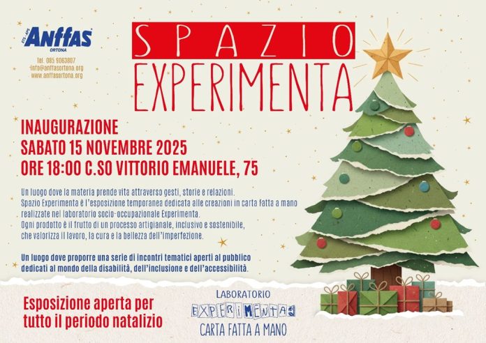 ORTONA – Un viaggio nella bellezza della manualità, dell’inclusione e dell’espressione creativa: è questo il cuore di Spazio Experimenta, l’esposizione temporanea promossa da Anffas Ortona ets-aps, dedicata alle creazioni in carta fatta a mano realizzate all’interno del laboratorio socio-occupazionale Experimenta.