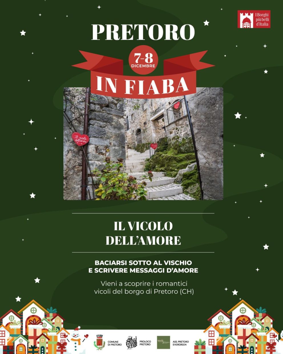 L’evento è curato da Proloco Pretoro APS e Associazione Pretoro Evergreen APS, con il patrocinio del Comune di Pretoro. Le due realtà operano per valorizzare il patrimonio culturale, naturalistico e sociale del borgo, promuovendo Pretoro come meta autentica e sostenibile.