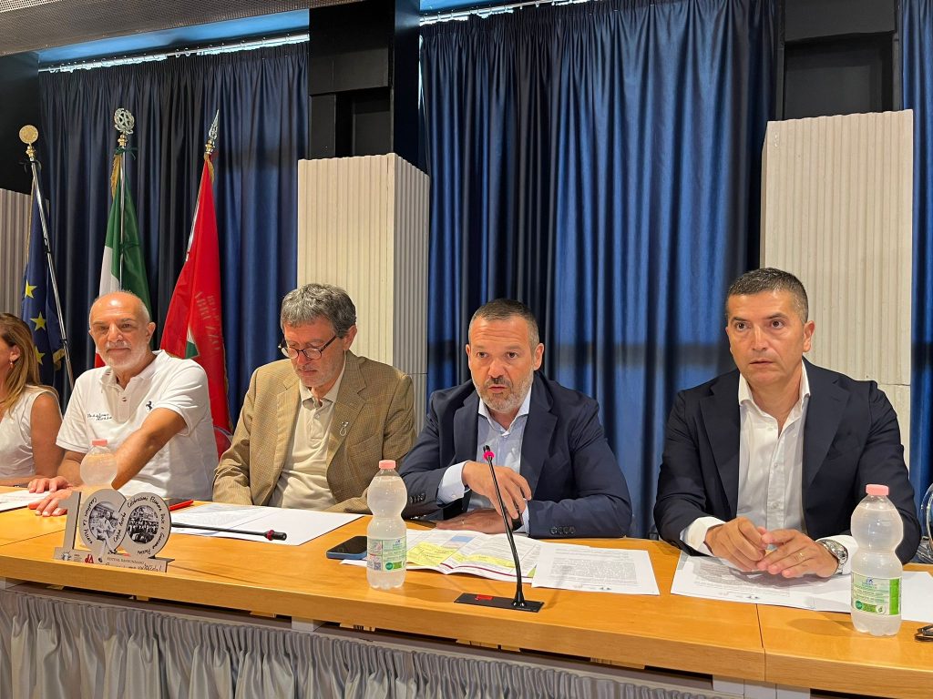“Nove giorni di eventi, convegni, dibattiti, incontri, tanto sport, teatro e musica: da Stefano De Martino ad Anna Foglietta a Giancarlo Giannini, passando attraverso Giordano Bruno Guerri che sarà il filo conduttore di ciascuna giornata, con la Scudetto Cup che vedrà riunite le squadre Under 15 di Inter, Milan, Juve, Roma, Fiorentina e Pescara Curi e i Campionati Italiani Giovanili in Doppio di Vela con mille atleti. Si apre ufficialmente la sesta edizione del Festival Dannunziano che prenderà il via il 31 agosto con un evento straordinario: l’acquisizione del Fondo Paglieri, 14mila volumi per 150 metri quadrati di esposizione, per la nascita della Biblioteca dannunziana d’Abruzzo”. Sono le parole con cui il Presidente del Consiglio regionale Lorenzo Sospiri ha aperto la conferenza stampa di presentazione della sesta edizione del Festival Dannunziano sul tema di ‘Pescara è uno Spettacolo’, in programma dal 31 agosto all’8 settembre. Presenti oltre al Presidente Sospiri, anche il Governatore della Regione Abruzzo Marco Marsilio, il sottosegretario al Turismo Daniele D’Amario, il sindaco di Pescara Carlo Masci, gli assessori comunali alla Cultura Maria Rita Carota, ai Grandi Eventi Alfredo Cremonese, al Turismo Zaira Zamparelli, il consigliere regionale Luca De Renzis per l’Ufficio di Presidenza, il consigliere regionale Leonardo D’Addazio e gli organizzatori della Scudetto Cup con Antonio Martorella e Alessandro Pavone per i Campionati di Vela.