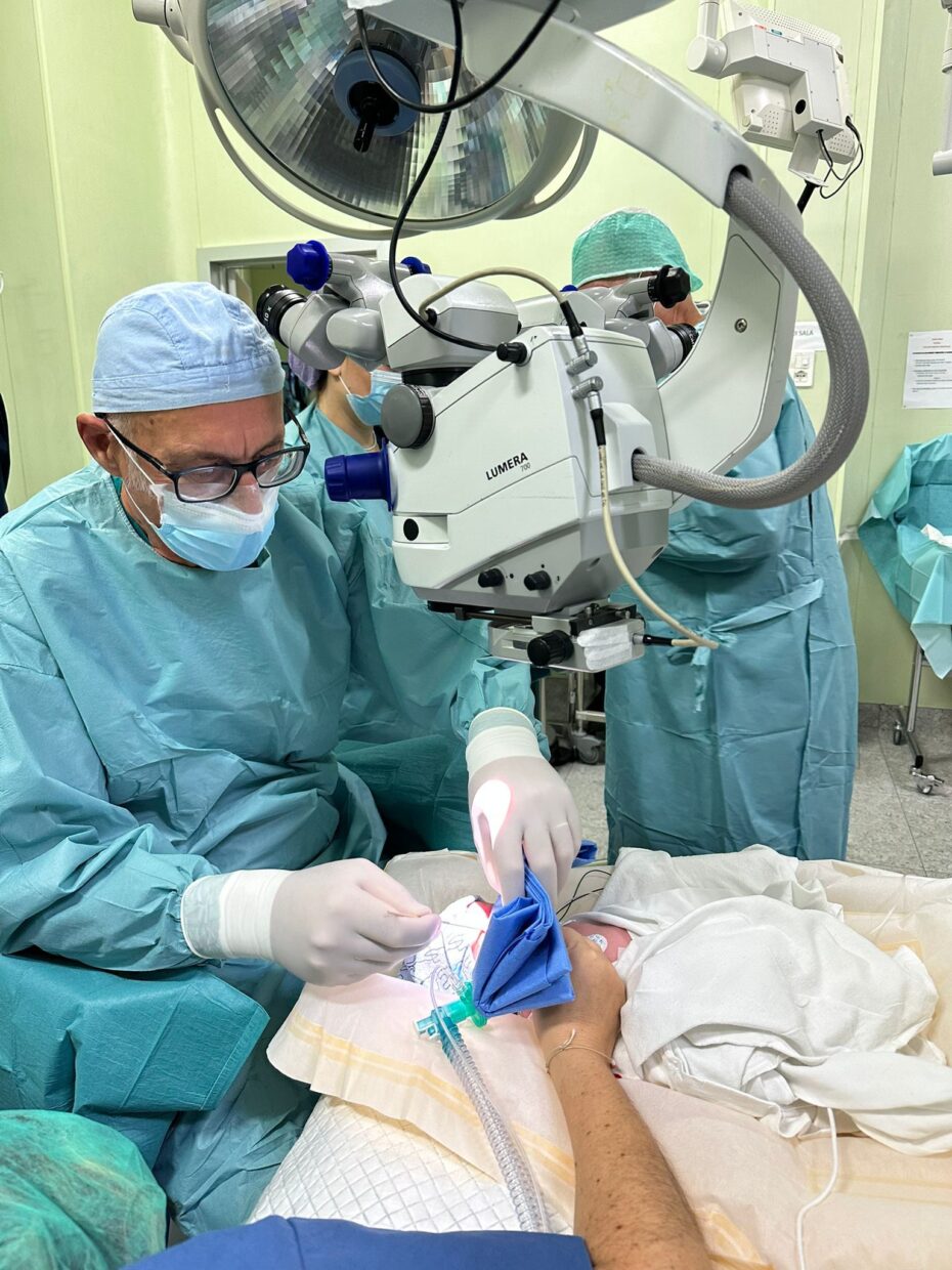 La ROP è una patologia oculare che colpisce i neonati pretermine e deriva da una crescita anomala dei vasi sanguigni della retina. Senza un intervento tempestivo può evolvere verso esiti gravi, fino alla compromissione permanente della vista. La neonata è stata presa in carico dalla Terapia Intensiva Neonatale e inserita in un percorso multidisciplinare che ha coinvolto la UOC di Oculistica, l’Oftalmologia Pediatrica e l’Anestesia del Blocco Operatorio. Dopo una valutazione congiunta, le équipe hanno deciso di procedere al trattamento intravitreale, oggi considerato uno degli approcci più efficaci nelle forme avanzate di ROP.