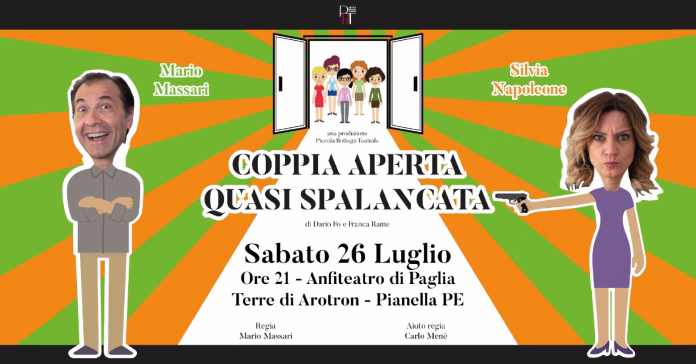 Nel cuore delle Terre di Arotron, tra le suggestioni naturali di C.da Santa Scolastica a Pianella (PE), il sipario dell’Anfiteatro di Paglia si prepara a riaprirsi per uno degli appuntamenti più attesi dell’Estate dell’Aratro 2025: sabato 26 luglio alle ore 21:00 va in scena Coppia aperta, quasi spalancata, classico corrosivo e attualissimo firmato da Dario Fo e Franca Rame.