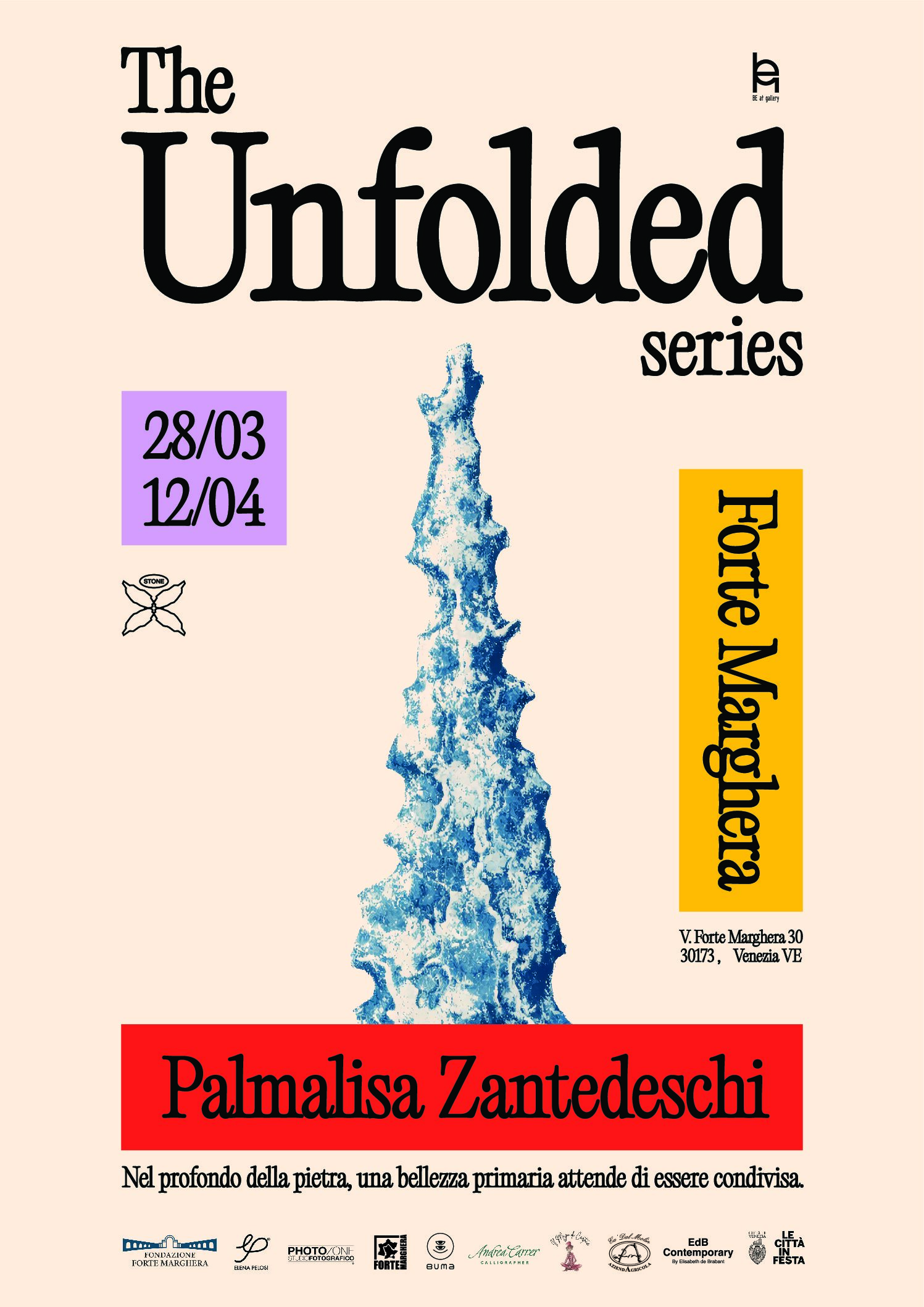 Dal 28 marzo al 12 aprile 2026, Forte Marghera ospita “The Unfolded Series – Stone”, la mostra d’Arte in Pietra dell’artista e imprenditrice Palmalisa Zantedeschi, a cura della BE at gallery. L’evento è realizzato con il patrocinio ed il supporto della Città di Venezia e della Fondazione Forte Marghera ed inserito nella programmazione “Le Città in Festa”.