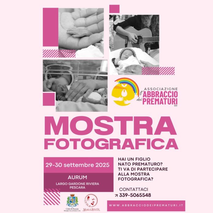 Pescara – 24 settembre 2025 – Sarà ospitata all’Aurum di Pescara il 29 e 30 settembre la mostra fotografica solidale promossa dall’associazione “L’abbraccio dei prematuri”, a sostegno dell’Unità Operativa Complessa di Neonatologia e Terapia Intensiva Neonatale. L’iniziativa, presentata oggi in conferenza stampa alla presenza dell’assessore Massimiliano Pignoli, punta a sensibilizzare la cittadinanza e raccogliere fondi per progetti dedicati ai piccoli pazienti e alle loro famiglie.