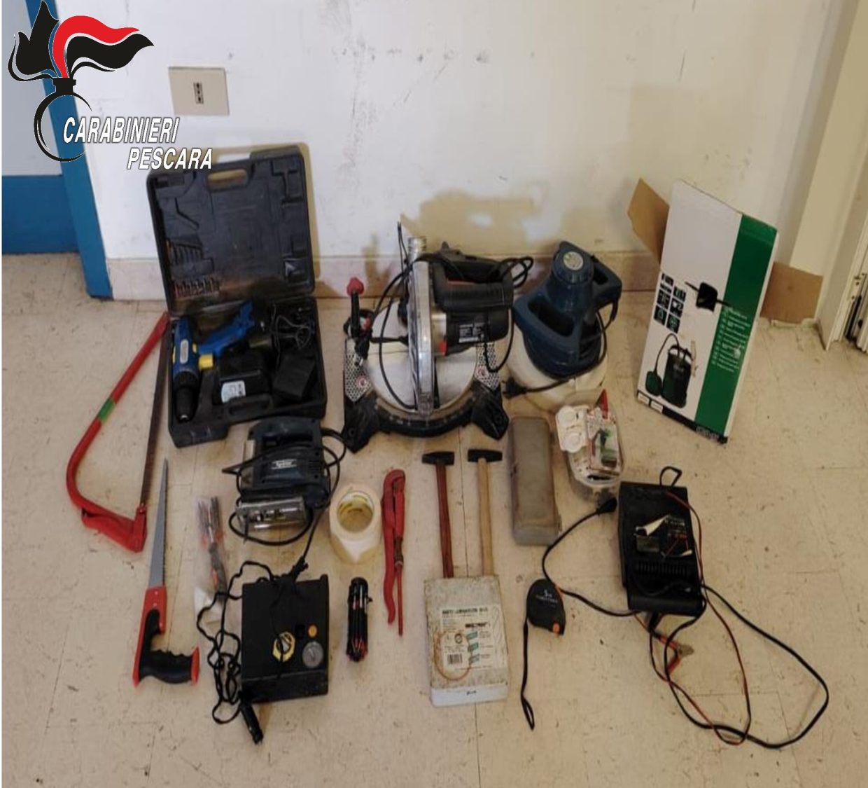 I Carabinieri stanno ora cercando di individuare il legittimo proprietario degli utensili. Gli oggetti sequestrati sono custoditi presso gli uffici del Nucleo Operativo e Radiomobile della Compagnia di Pescara, in via Lago di Borgiano, dove potranno essere visionati ogni giorno dalle 8 alle 13.