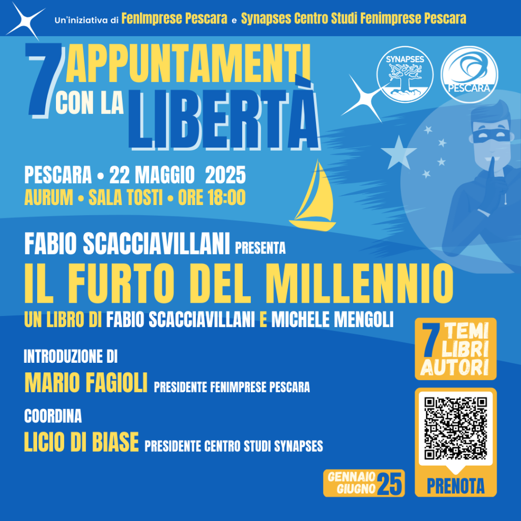 Giovedì 22 maggio 2025 alle ore 18:00 presso la sala Tosti dell’Aurum, Largo Gardone Riviera, a Pescara, avrà luogo il sesto incontro del ciclo denominato “7 Appuntamenti con la Libertà”.