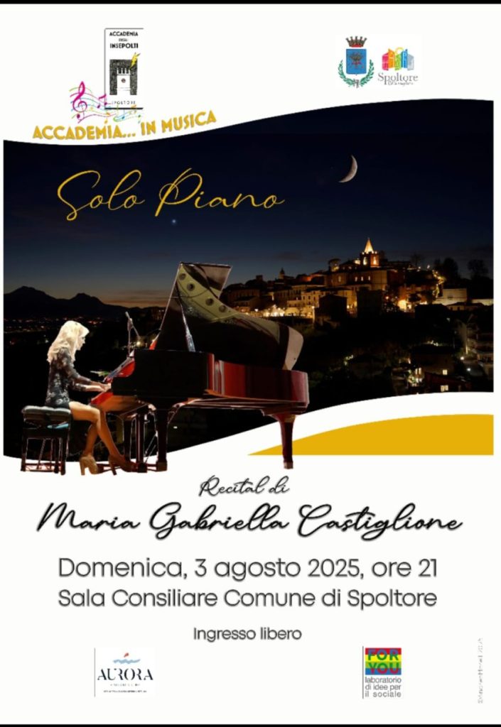 Spoltore (PE), 1 agosto 2025 – Un appuntamento imperdibile per gli amanti della musica colta: domenica 3 agosto alle ore 21:00, la sala consiliare del Comune di Spoltore ospiterà il recital pianistico “Solo Piano” di Maria Gabriella Castiglione, artista di fama internazionale.