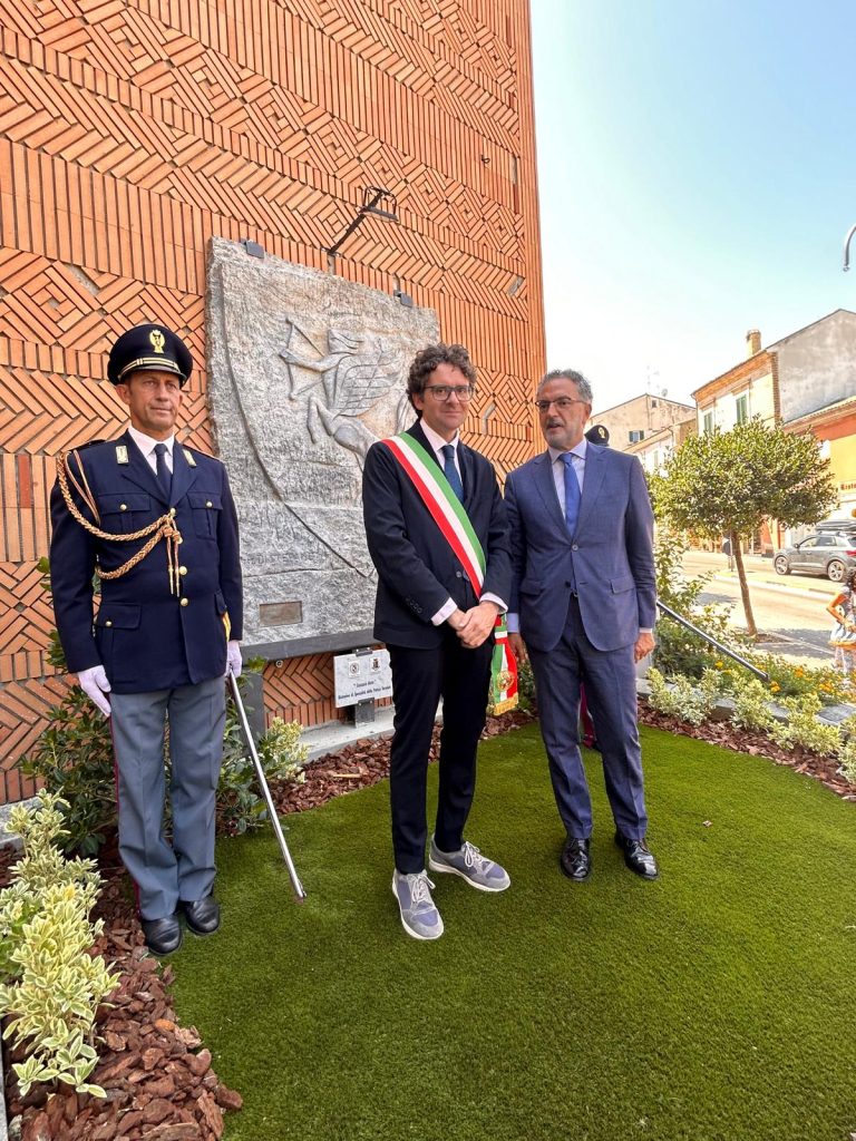 Francesco Menna “La Città del Vasto è storicamente legata alla Polizia di Stato da speciali vincoli di rispetto istituzionale: ne è cristallina testimonianza la memorabile Cerimonia Istituzionale di Intitolazione del ‘Largo Antonio Manganelli’ e di Inaugurazione del Monumento ai Caduti della Polizia di Stato, che abbiamo vissuto il 29 giugno 2020 alla presenza dell’allora Capo della Polizia- Direttore Generale della Pubblica Sicurezza, il Prefetto Franco Gabrielli. Oggi quell’abbraccio con cui la nostra cittadinanza si strinse attorno alle donne e agli uomini della Polizia di Stato, si rinnova nell’occasione del riposizionamento della stele scultorea. Quando l’amico, Commissario in quiescenza Giuseppe Cervellini, che ringrazio, mi ha suggerito di valorizzare questo monumento con una nuova prestigiosa collocazione, ho subito aderito, nella convinzione che tale gesto ben interpretasse la gratitudine che nutriamo verso i tanti Dirigenti ed agenti della Polizia Stradale che hanno prestato, nel corso degli anni, il proprio servizio a Vasto”.