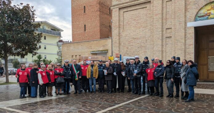 Montesilvano rinnova il suo storico appuntamento con la solidarietà grazie alla “Befana del Vigile”, l’iniziativa della Polizia Locale che anche quest’anno ha permesso di raccogliere e donare 14 quintali di beni di prima necessità alla Caritas parrocchiale di Sant’Antonio. La consegna è avvenuta questa mattina nel piazzale antistante la chiesa, alla presenza del sindaco Ottavio De Martinis, del comandante della Polizia Locale Nicolino Casale, delle forze dell’ordine e dei volontari Caritas.
