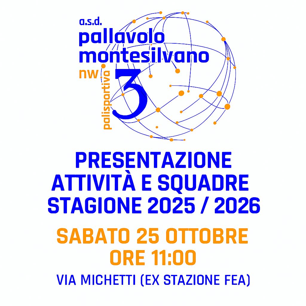 La città si prepara a vivere un nuovo capitolo della sua storia sportiva. Sabato 25 ottobre, alle ore 11:00, nella sede di Via Michetti (Ex Stazione FEA), l’a.s.d. Pallavolo Montesilvano 3 presenterà ufficialmente le attività e le squadre per la stagione 2025/2026.