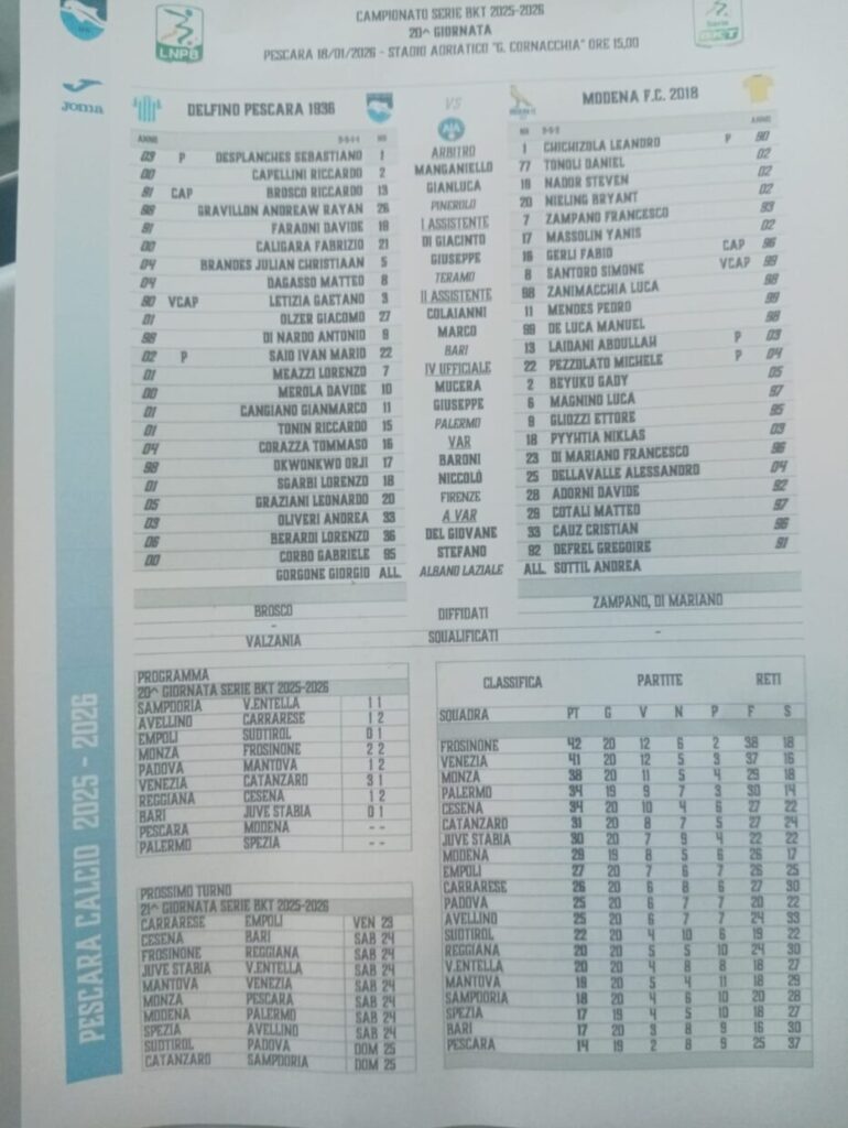 Scontro infuocato quello che attende oggi i biancazzurri di Mister Gorgone: alle 15,00, allo Stadio Adriatico-Giovanni Cornacchia, arriva il Modena per la 20ª giornata di Serie B.